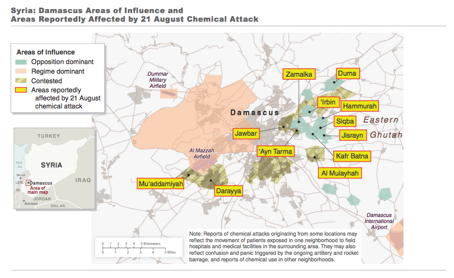 The U.S. Navy has increased its deployment of ships in the Eastern Mediterranean to fiveArleigh Burke Class destroyers carrying guided missiles: USS Stout, USS Mahan, USS Ramage, USS Gravely, and USS Barry. For more on the capabilities of these ships, see ISW’s recent report, "U.S. Navy Positions Ships for Possible Strike against Syrian Targets."
